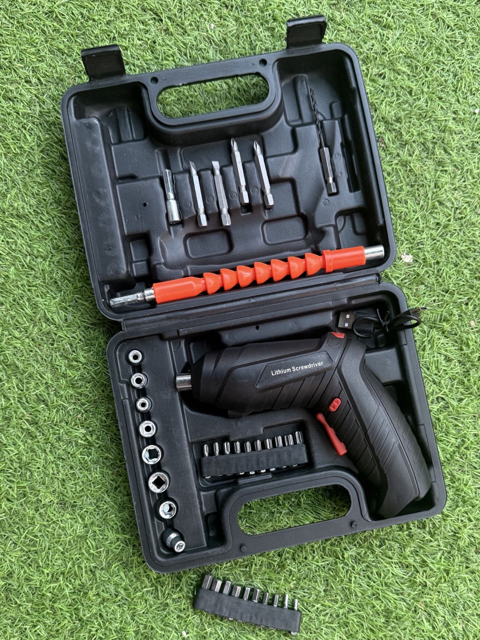 Incluye 45 accesorios para cualquier tarea: muebles, electrónica, bicicletas, y más.